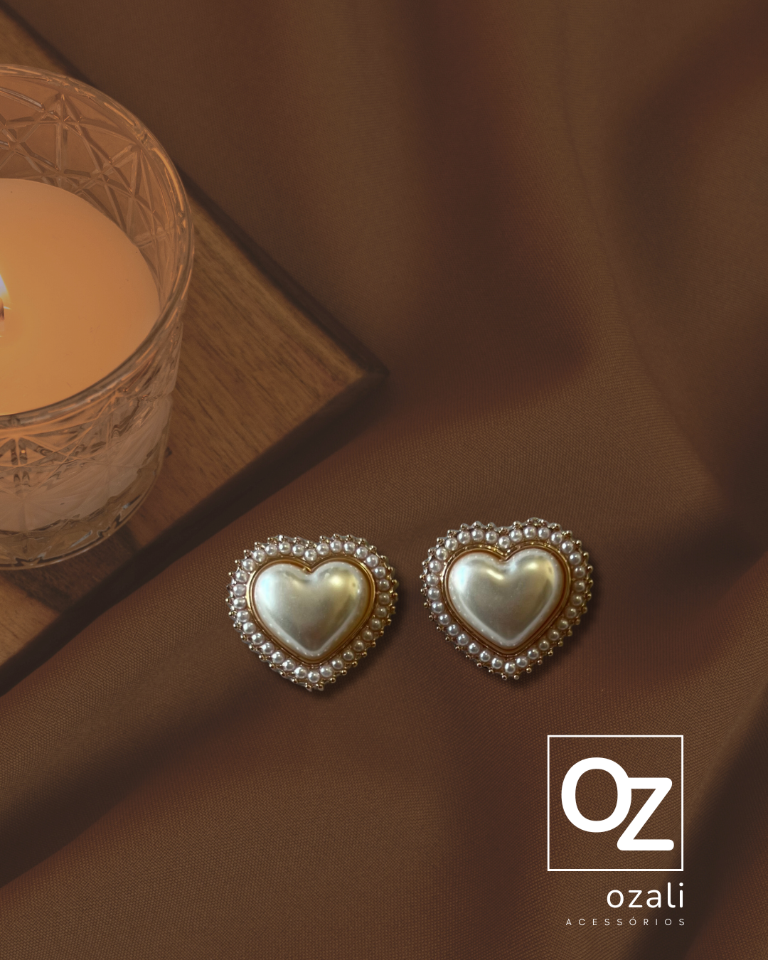 Brinco coração de pérola combinação perfeita para momentos especiais